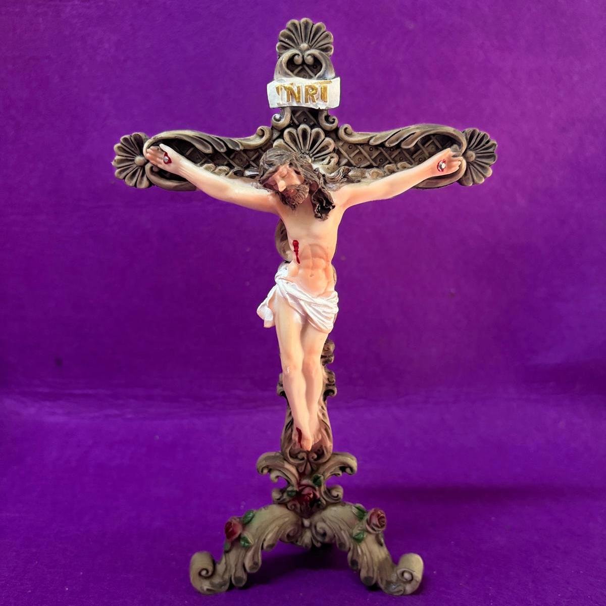 La figura de Jesús crucificado representa la fe, el sacrificio y la redención en la tradición cristiana. Simboliza el amor y la entrega de Jesús por la humanidad, recordando valores como la esperanza, el perdón y la fuerza espiritual ante las dificultades.