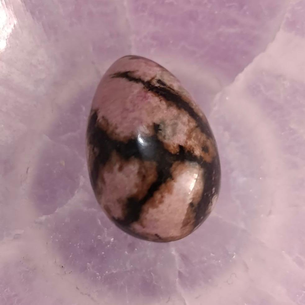 Este huevo de mineral natural es único, con vetas rosadas y negras que reflejan la autenticidad y belleza natural de la piedra. Su forma suave permite una circulación equilibrada de la energía, ideal para colocar en tu hogar, espacio de trabajo o altar personal.