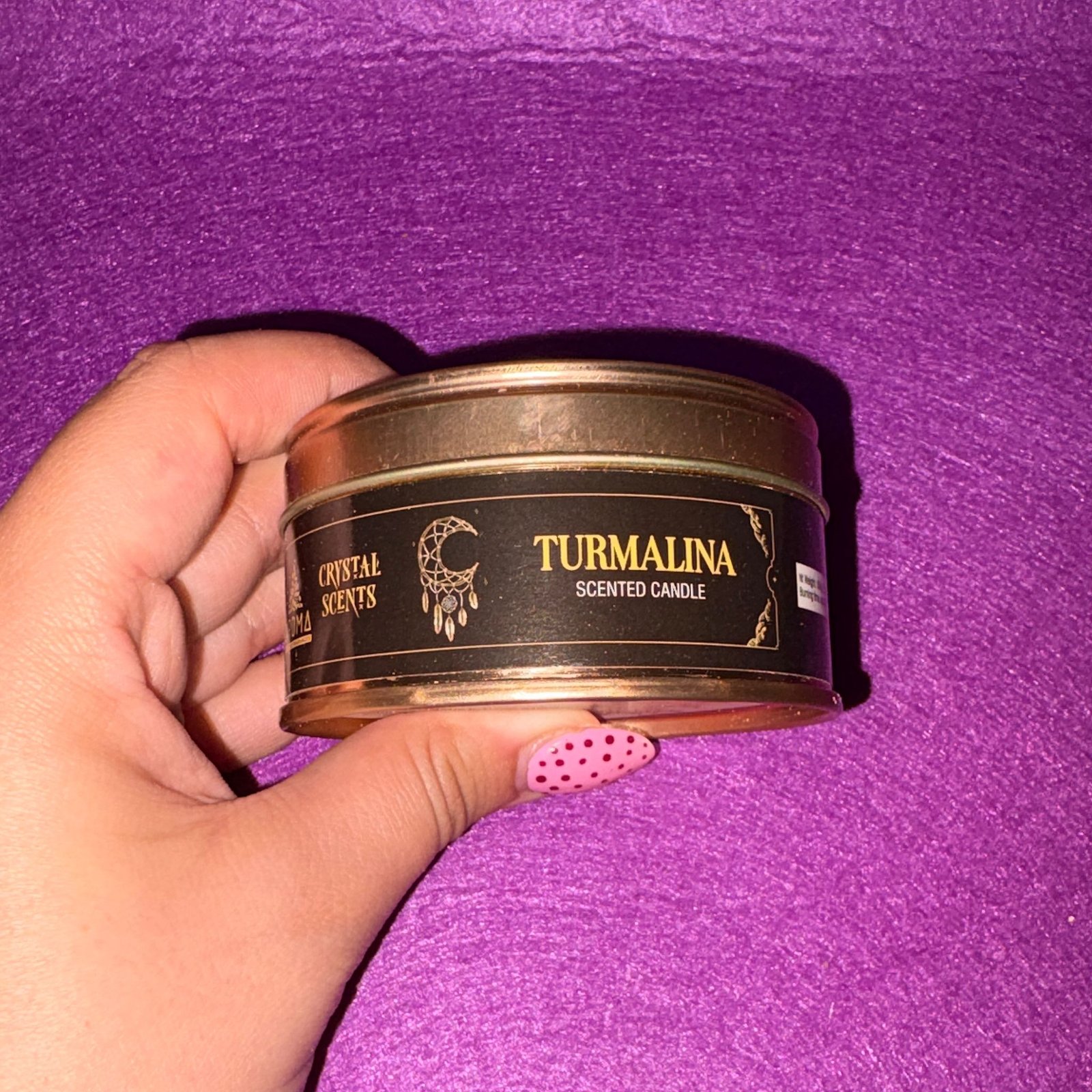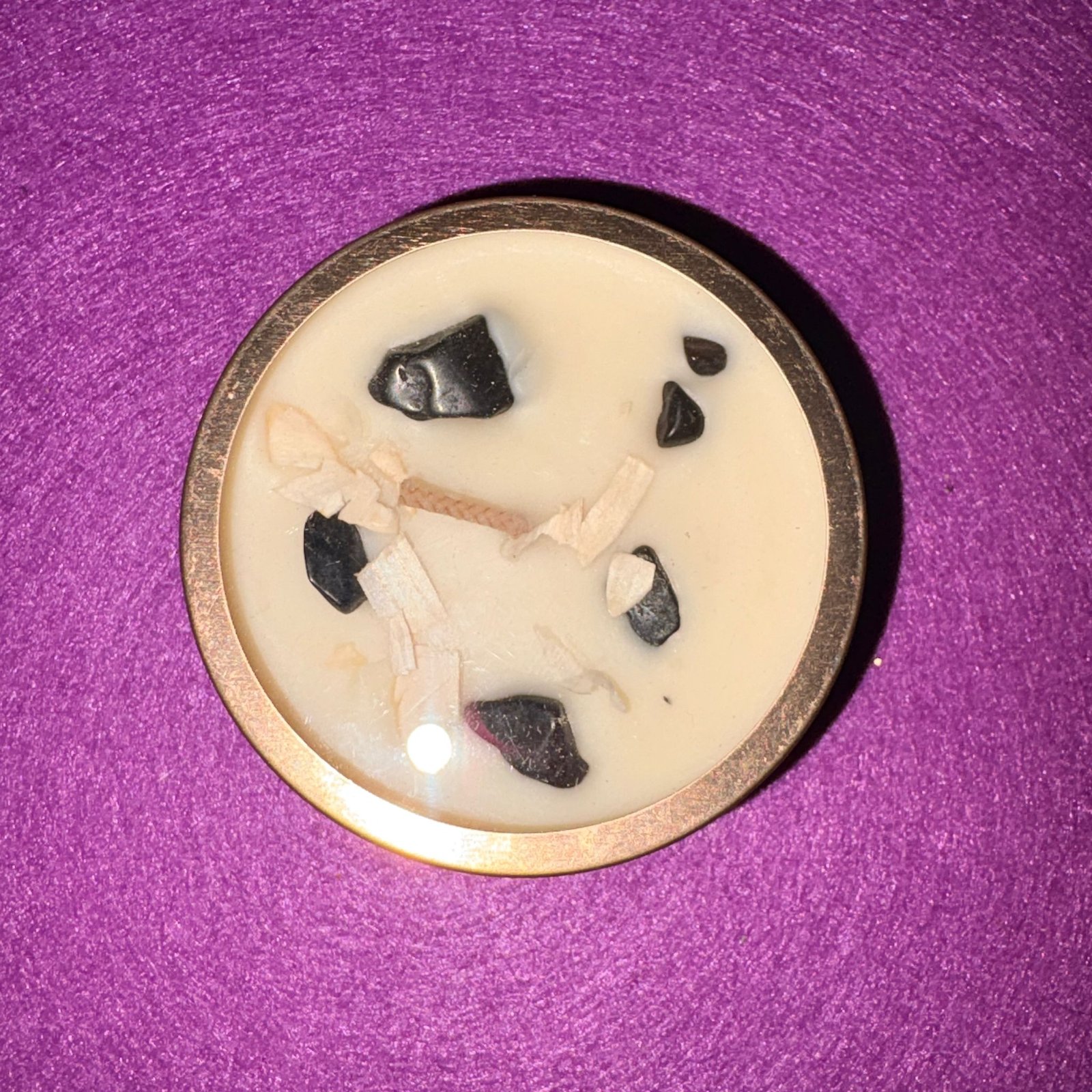 Por lo que sabemos que es de turmalina es porque contiene estratos de ella en su contenido y en la superficie de la vela pequeños fragmentos de este mineral